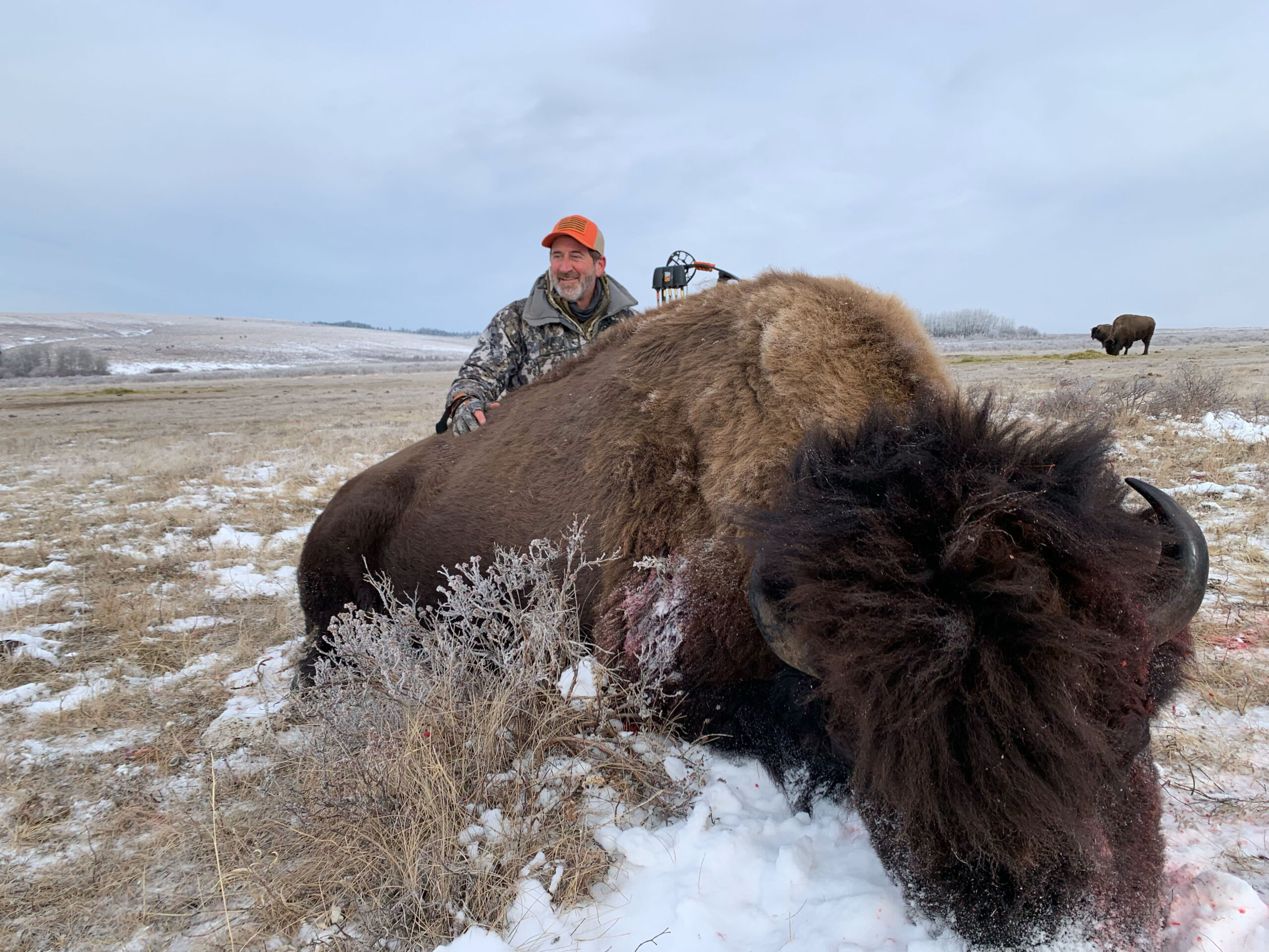 Hunting buffalo (bison) in Alberta is a true test of skill and endurance. These massive animals can weigh over 2,000 lbs, making them one of North America’s most challenging big-game species to hunt. Our buffalo hunts take place on vast private ranchlands, where you’ll track and stalk mature bulls for a once-in-a-lifetime trophy.